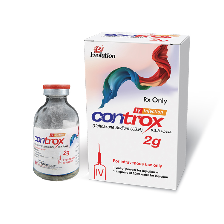 Overview: CONTROX 2g IV is a high-quality injectable antibiotic manufactured by Evolution Pharmaceuticals (Pvt.) Ltd. As the highest strength in the Controx range, it is developed for serious bacterial infections and strictly adheres to United States Pharmacopeia (U.S.P.) standards to ensure maximum safety and therapeutic efficacy.